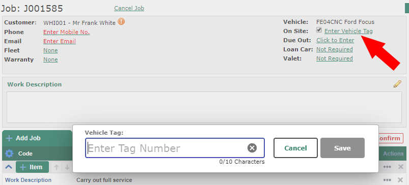 Unlike key tags, vehicle tags do not have to be unique and will remain against the job when the vehicle is marked off site.