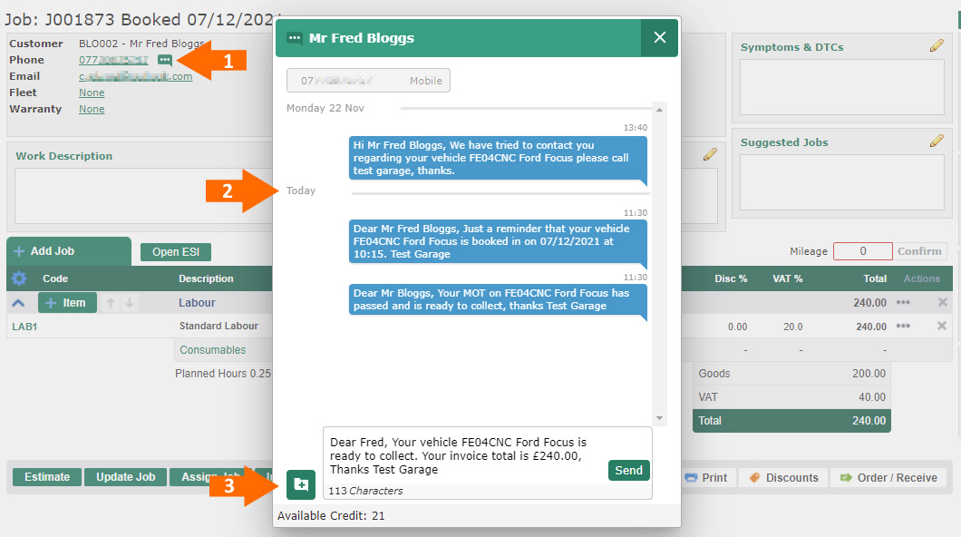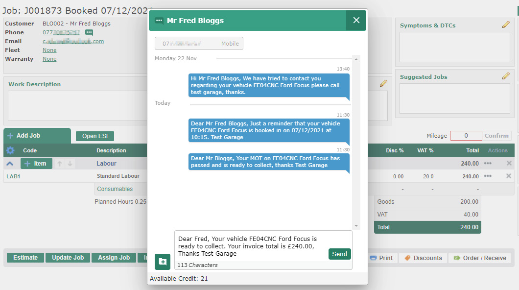 SMS is one of the most popular and powerful tools in Autowork Online. Reminders for works and appointments can be sent automatically using the existing Automation feature, and direct customer communications can be sent manually, on-demand. The latter can be used for progress updates, estimates and ready to collect alerts. This all combines to keep your staff and phone lines free.