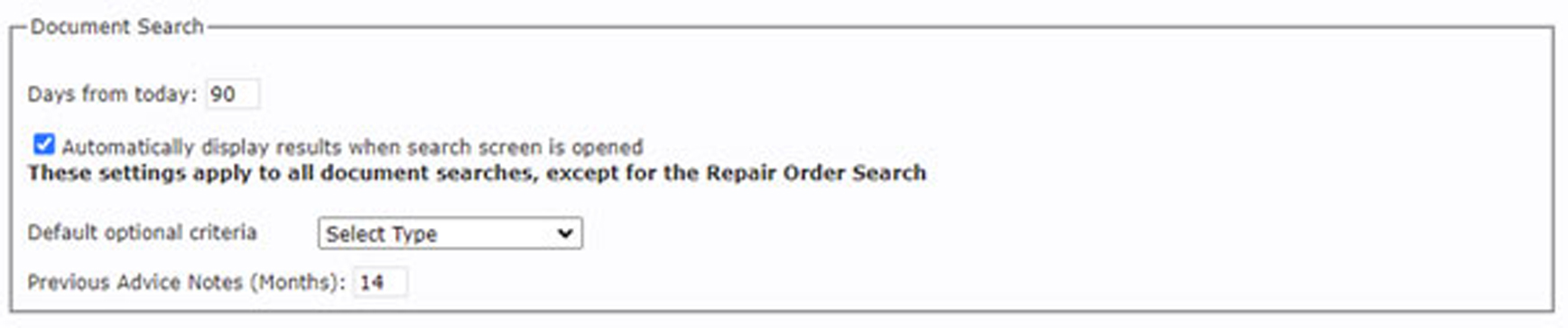 The screen will now pre populate your preferred date range and auto display using your existing Document Search settings for quick access. If you have not set these options, you can do so now in the user settings screen.
