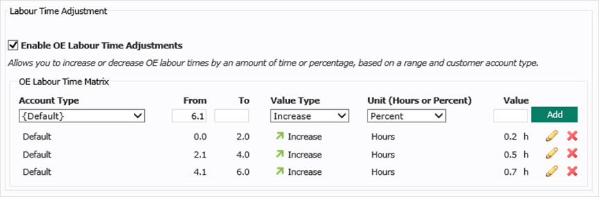 Gain more control over margins by adjusting the integrated manufacturer repair times. Automatically increase or decrease labour times by a percentage or fixed amount.