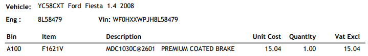 To help allocate parts following receipt, as well as the vehicle details, the Bin location is now printed on the GRN when the part is on file.
