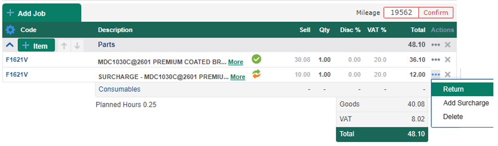 We have also fixed some other problems, including an issue which prevented some parts containing special characters being returned. Changes have also been made to prevent the wrong value being passed to the purchase invoice screen when invoicing orders containing returned parts.