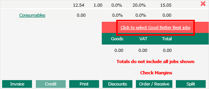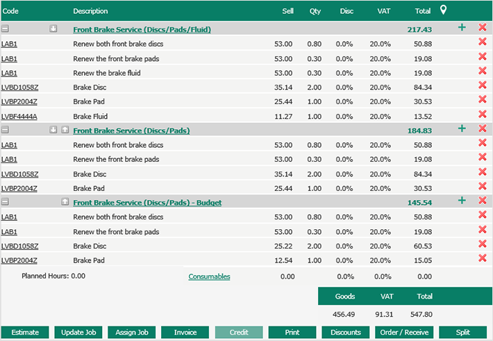 - Add or create a single job that includes all part and labour options >> clone the job >> delete the extra items that are not needed for that job option.