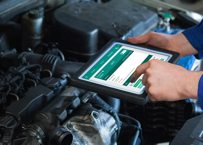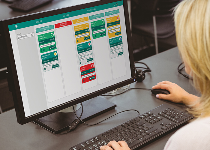The solution features a mobile/paperless job card for technicians that can be used on most phones, tablets or PCs, as well as a workshop manager screen for office use.